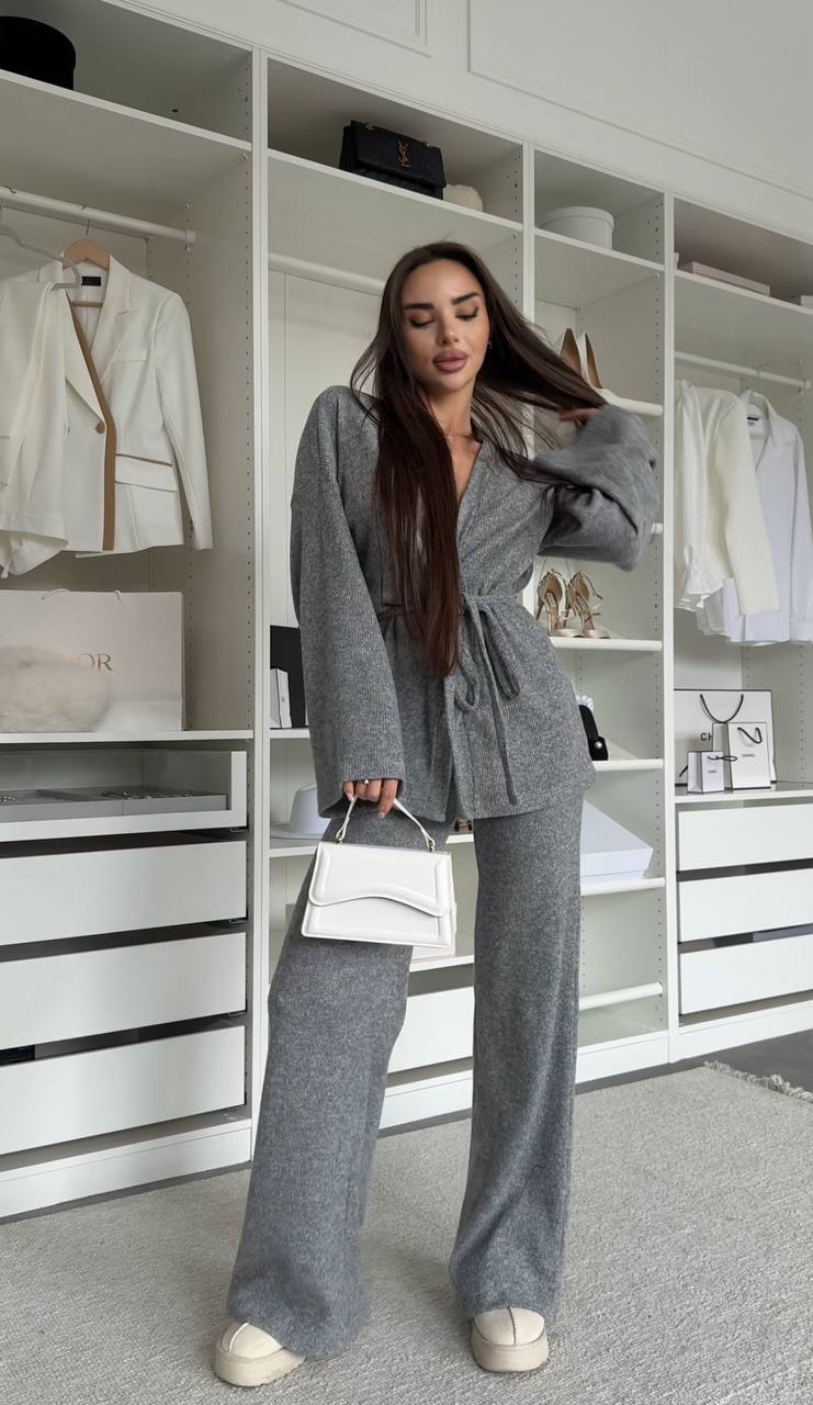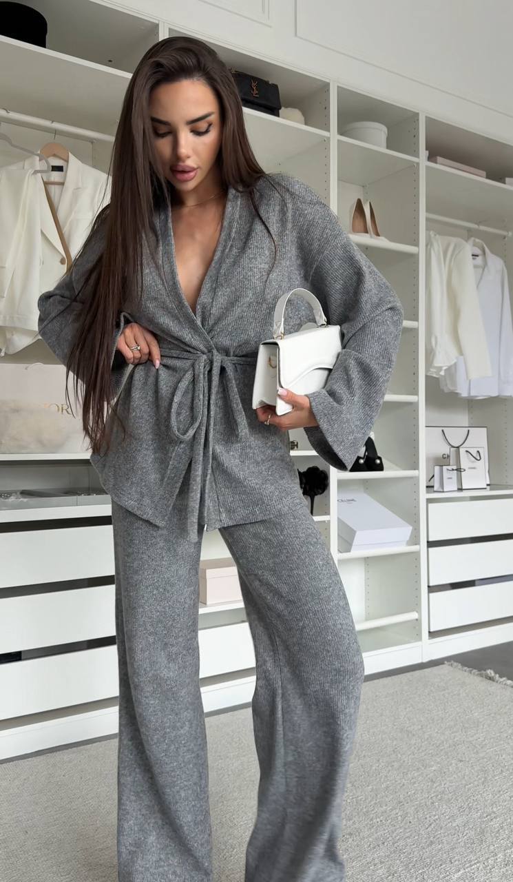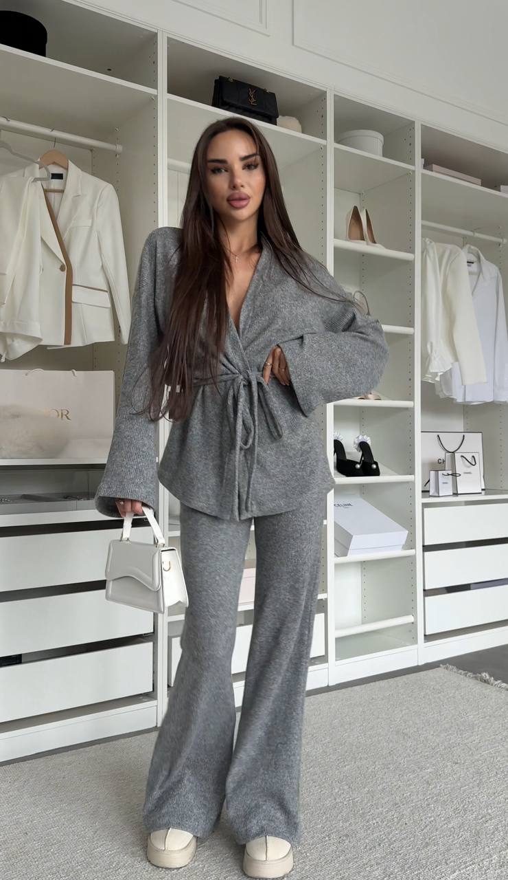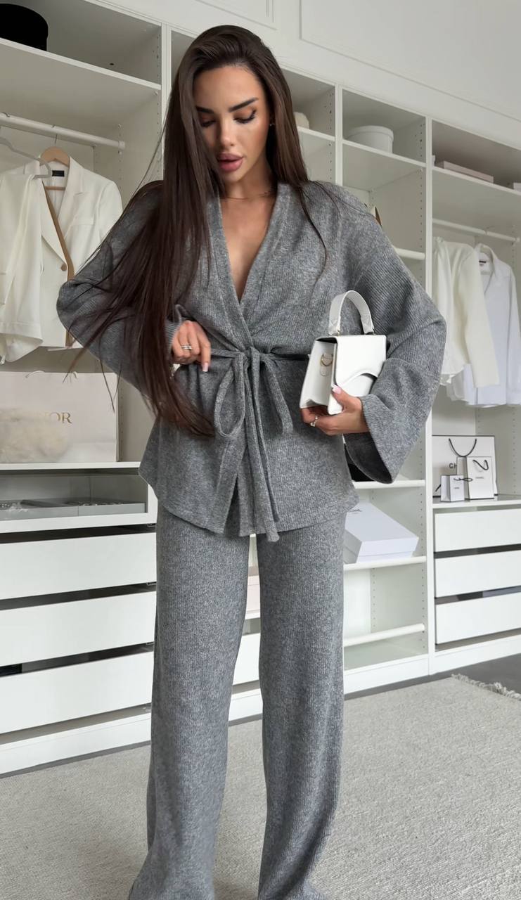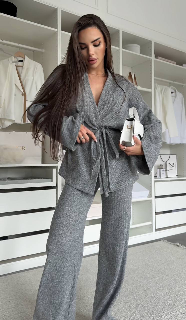 М'який костюм із ніжної ангори – ідеальний вибір для стильного відпочинку та затишних повсякденних образів. Комплект складається з кімоно-жакета з поясом та штанів прямого крою. Легка, приємна до тіла тканина дарує комфорт та тепло, а продуманий силует підкреслює жіночність та елегантність.