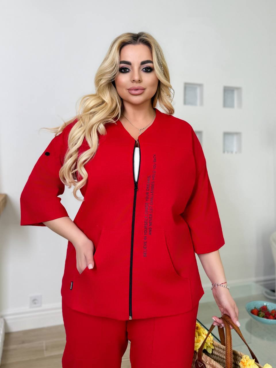 Кофта на молнії , з боків кишені , на передку накат , рукава по лікоть + патік ( можна регулювати довжину ), на кишені нашивка.