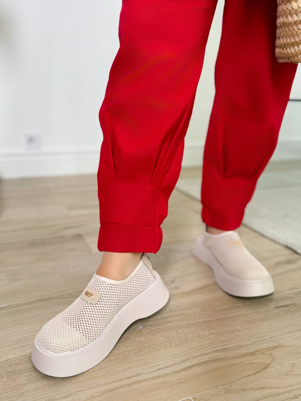 Штани на широкій резинці, з боків спереду кишені , по низу штанів складки , низ штанів на резинці.
