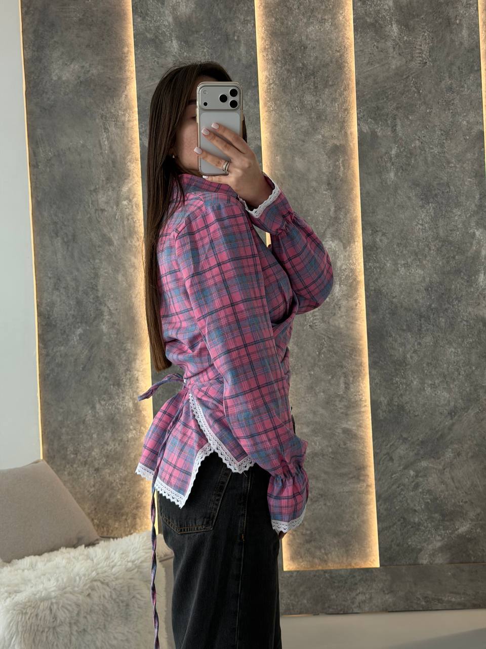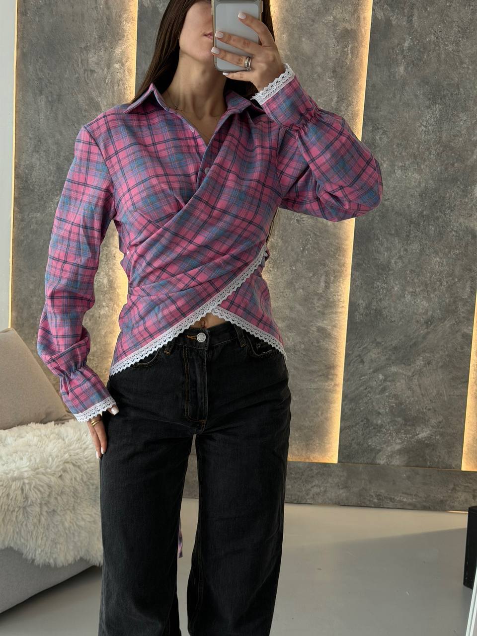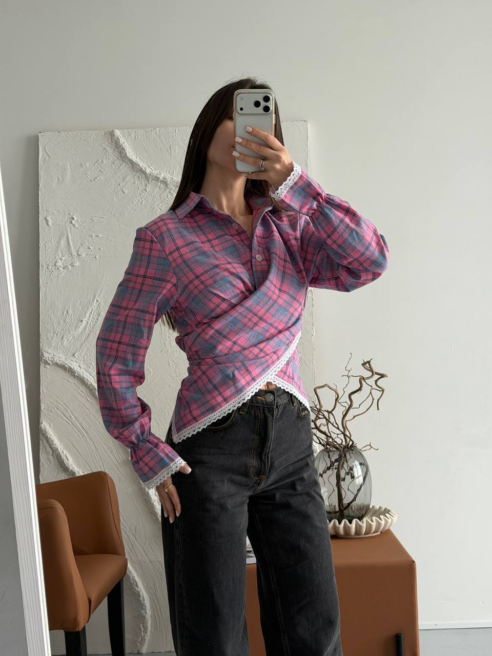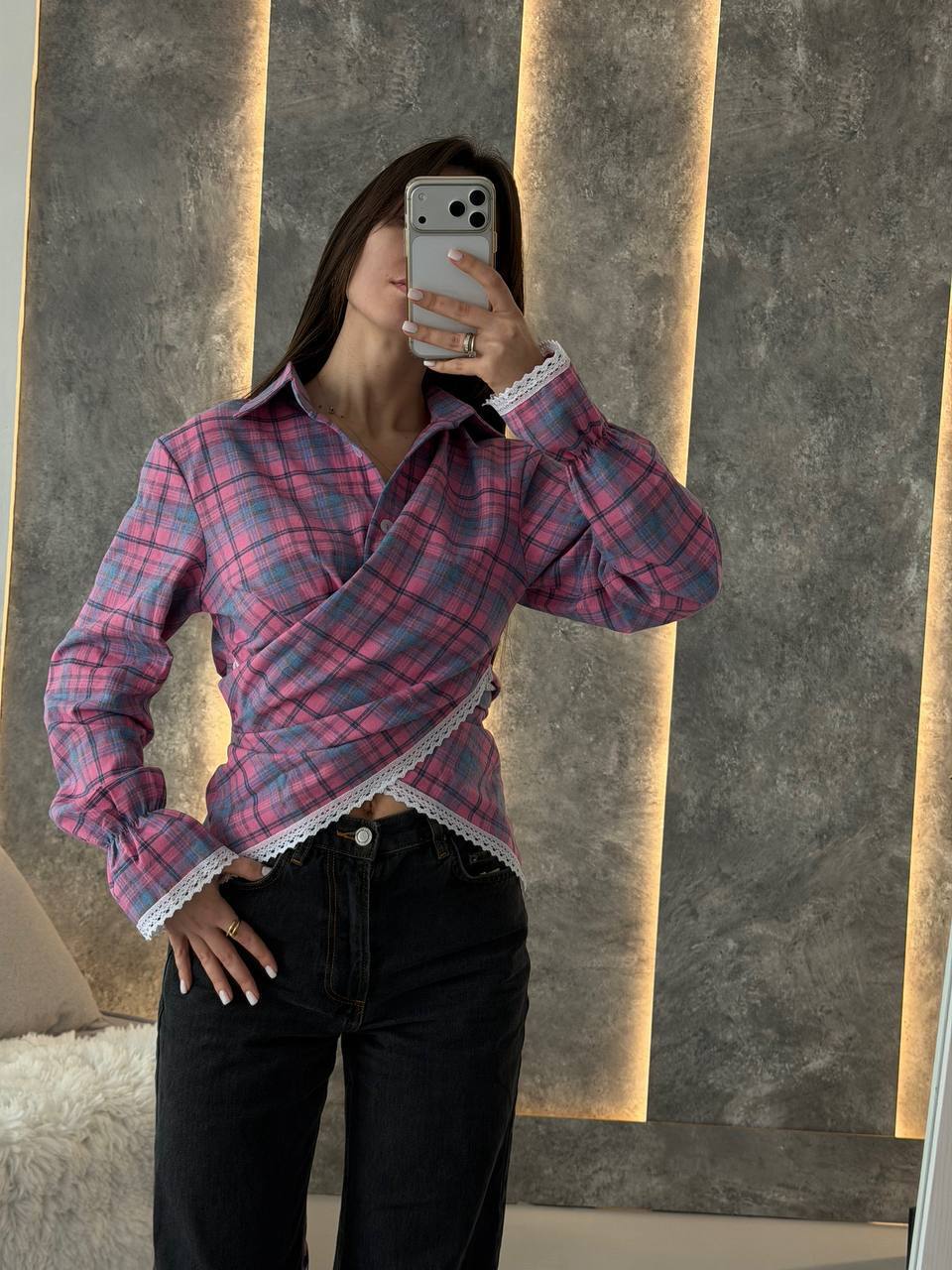 Стильна та акцентна сорочка з мереживом з натуральної тканини