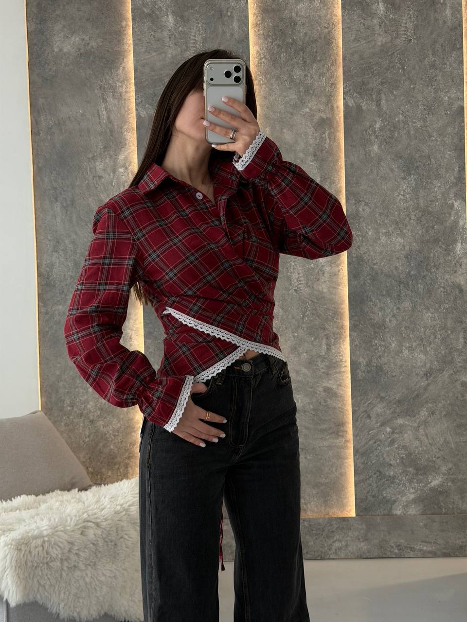 Стильна та акцентна сорочка з мереживом з натуральної тканини